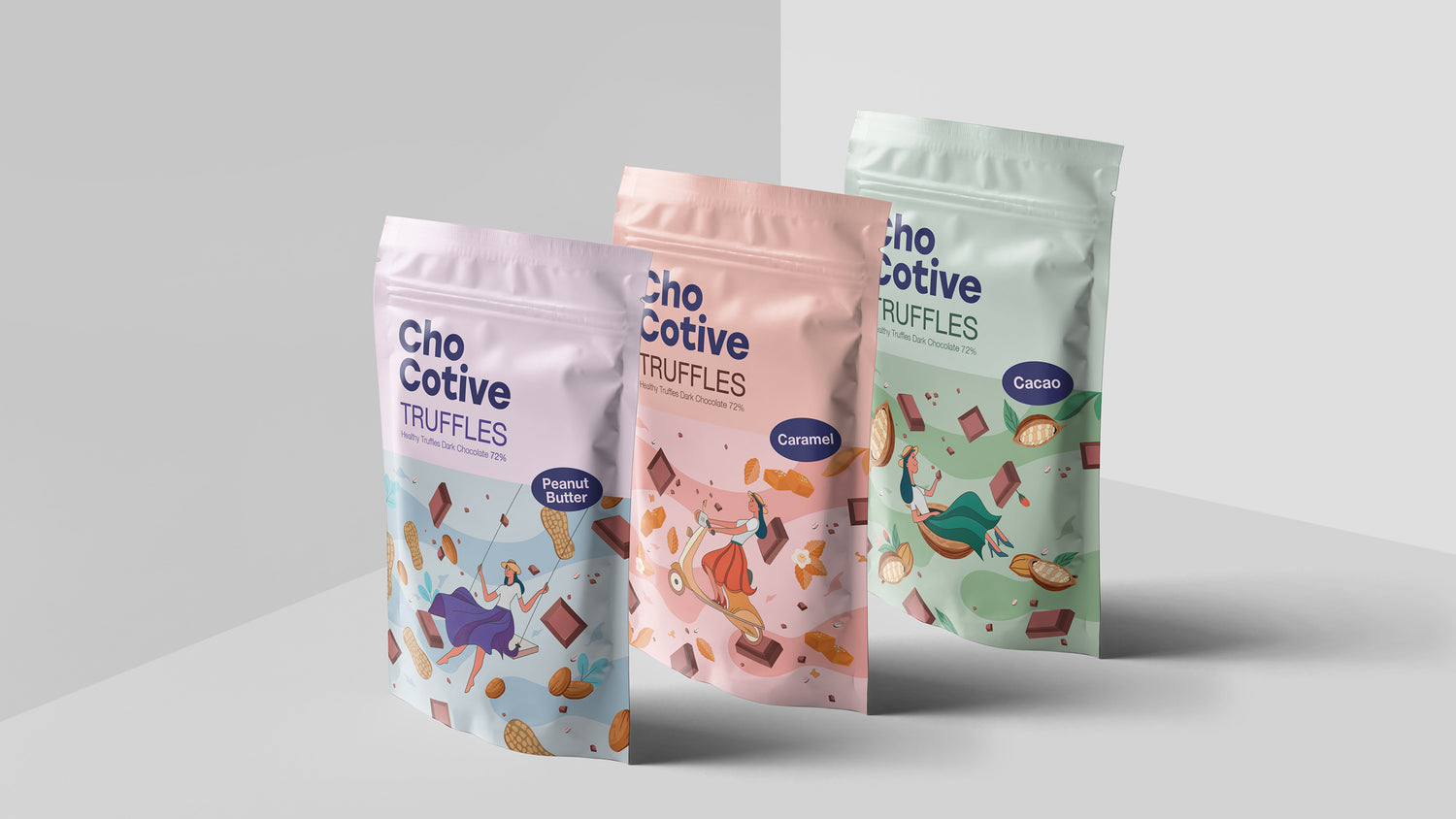Use custom stand up pouches to keep your products fresh. Each pouch is printed in full colour and features a resealable zip closure. Perfect for food, dry goods, powders, and more.